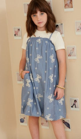 Girls Crochet Bow Embroidered Balloon Hem Dress | 7-16